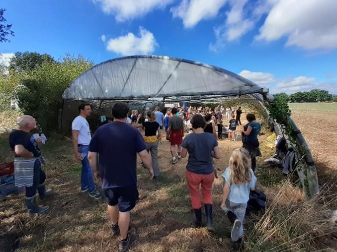 Des chantiers participatifs de nettoyage des champs avec les habitants ont eu lieu à 4 reprises et ont pu réunir jusqu’à 100 personnes. En effet, plusieurs parcelles souffrent d’une pollution au macro plastique provenant des bâches de paillage qui n’ont pas été retirées après les dernières cultures ».