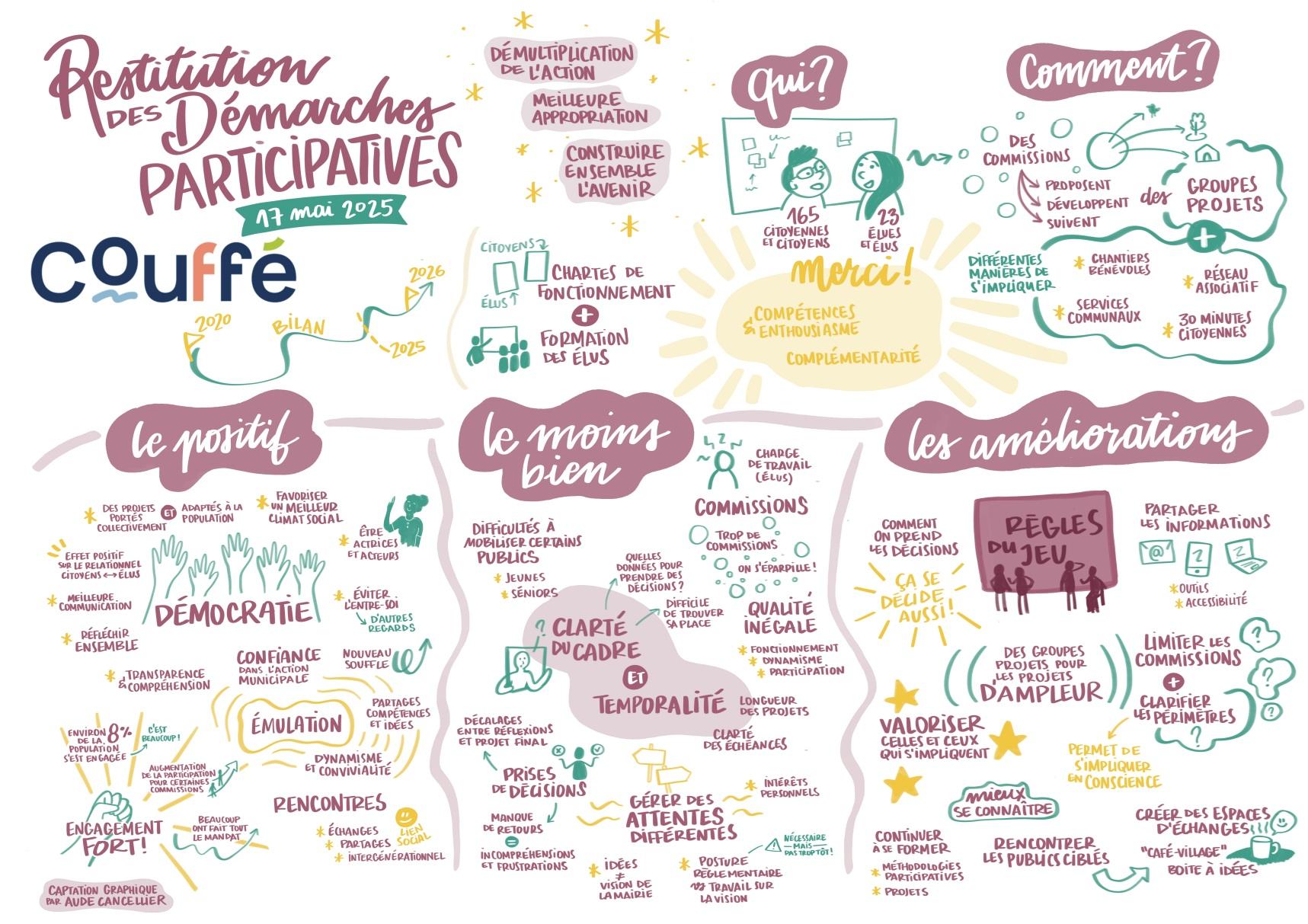 En parallèle, la commission “démocratie participative” a également organisé un évènement sur la participation citoyenne en 2023 et un bilan citoyen en 2025, afin de donner un temps aux citoyens investis dans les commissions et groupes projet pour faire remonter des points d’amélioration du dispositif.