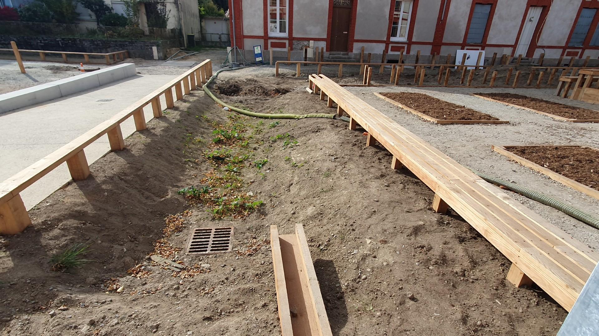 Un atelier co-porté par l’architecte et la SCOP l’Aronde, entreprise en charge du lot terre crue, a permis de sensibiliser le personnel aux particularités de ce matériau « innovant ». « C’est un matériau très ancien mais qu’on ne côtoie plus aujourd’hui et ça peut être déstabilisant pour les usagers. C’est important de lui redonner une application contemporaine, et de transmettre ses qualités et ses caractéristiques aux personnes qui vont y travailler. Ça demande une médiation qu’il faut anticiper » témoigne l’architecte.