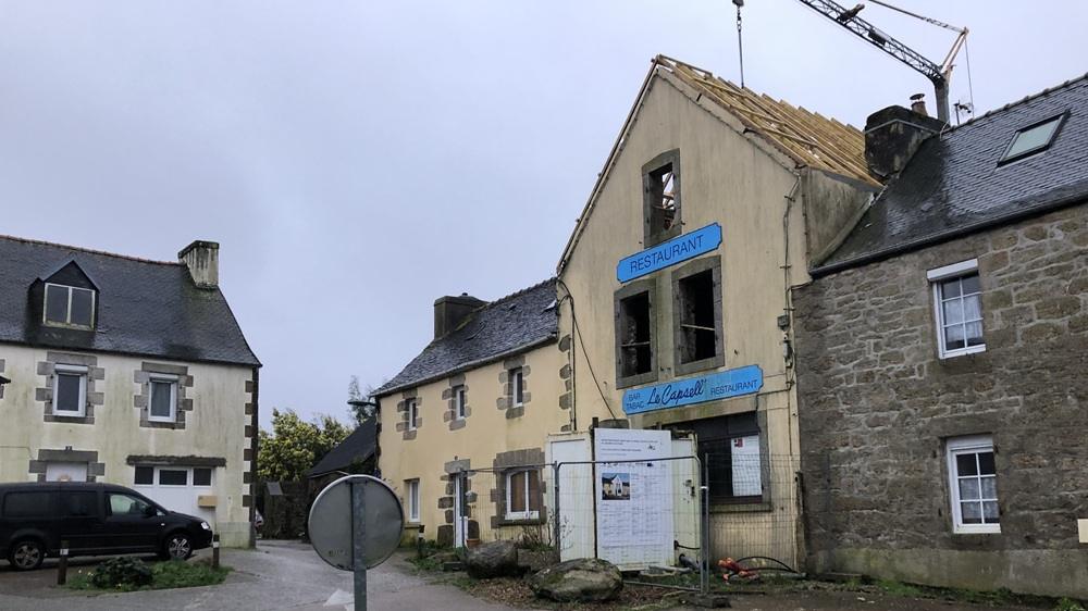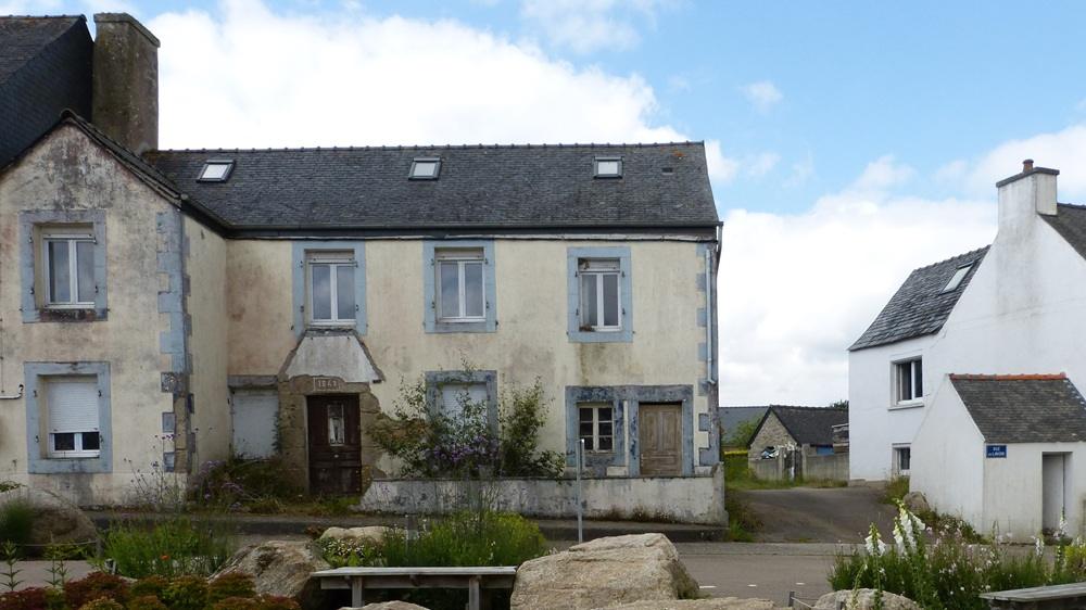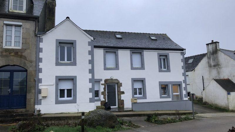 Une maison datant du début XXè, propriété communale, était en mauvais état mais sa structure était bonne : il était envisagé de la démolir mais l’architecte des bâtiments de France propose de la maintenir. Une rénovation est réalisée en 2021 avec un maître d’œuvre (Iauck à Morlaix) : « il est plus cher que d’autres, mais travaille vite et bien et il est efficace ». Les matériaux privilégiés sont le chanvre et la chaux pour l’isolation et les enduits. La maison est louée rapidement à une famille.