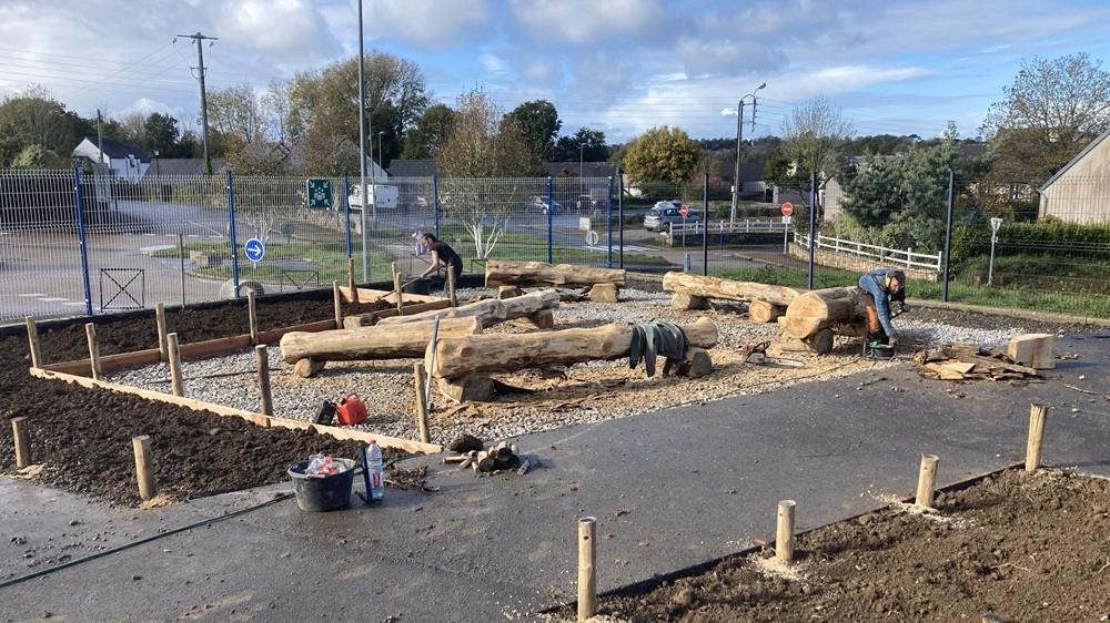 Le chantier a donc été mené avec les membres l’atelier Bivouac, une élue et les agents des services techniques. Les billes de bois de cyprès issues de la chute des arbres lors de la tempête Ciaran ont été données à la commune par une habitante ; elles sont taillées et poncées pour éviter que les enfants s’y blessent. « Dès la rentrée après les petites vacances, on apercevait les enfants nombreux grimper joyeusement sur les troncs, ça fait plaisir à voir ! »