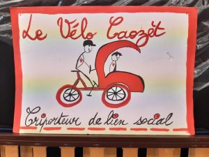 La partie appentis n’est pas encore aménagée, pour l’instant elle accueille les 2 triporteurs (dont l’un financé par la Carsat) de l’activité« vélo caozet » portée par l’association qui a pour objectif d’emmener les personnes âgées en balade à vélo électrique.