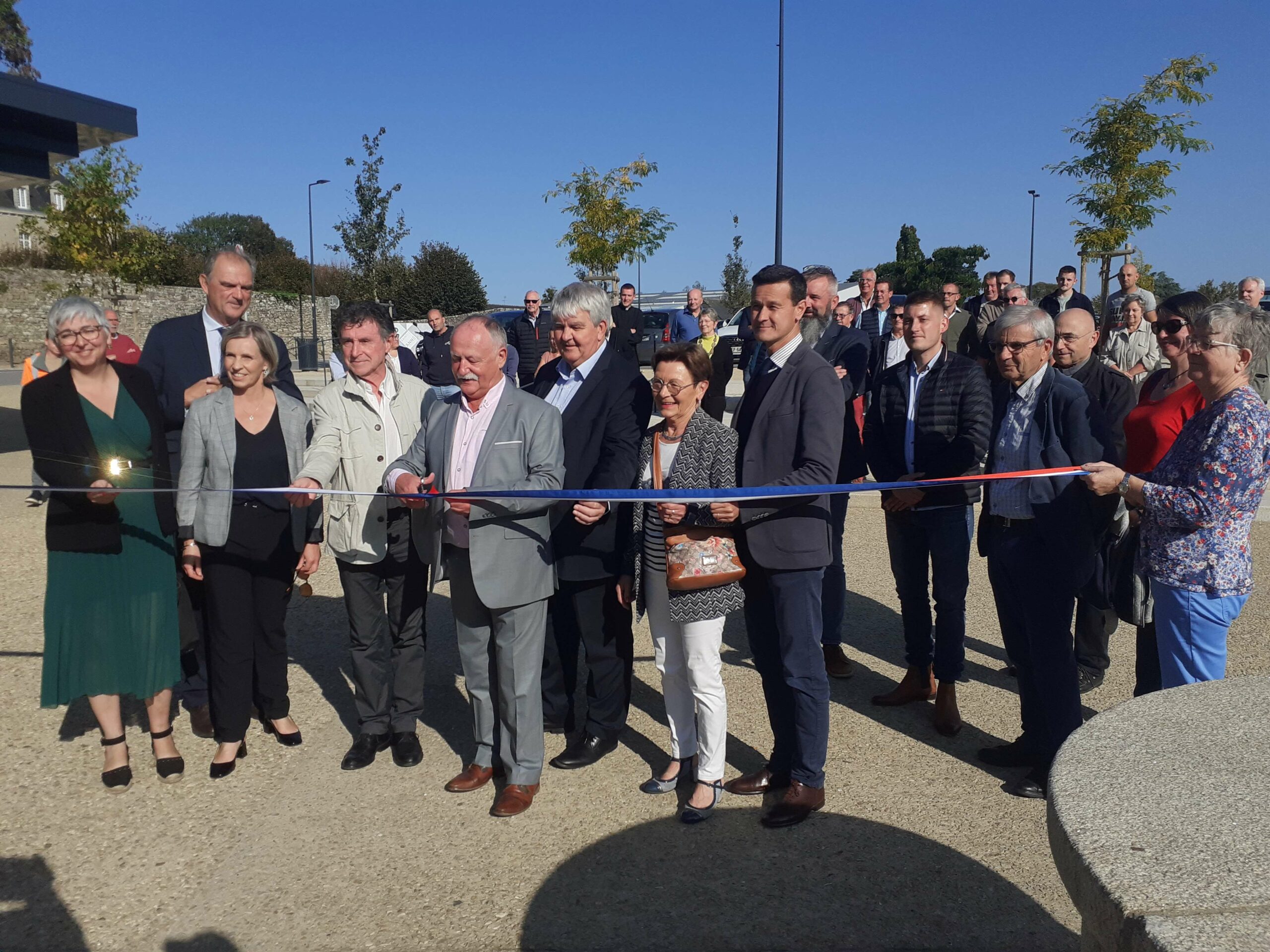 Suite à une marche commentée menée par Roland Gastine, maire et Jean-Michel Yannic, adjoint à l’urbanisme, travaux, aménagement, environnement, le ruban tricolore a été coupé sur la place Nicolazic devant la mairie en présence de Jimmy Pahun, député de la 2nd circonscription du Morbihan, Yves Bleunven, Sénateur du Morbihan, Murielle Jorda, Sénatrice du Morbihan, Baptiste Rolland le sous-préfet du Morbihan, Marie-José Le Breton, conseillère départementale, Michel Jallu, conseiller départemental, élus communaux ainsi que des partenaires, des habitants, des commerçants et les entreprises ayant travaillés au projet et à sa réalisation .