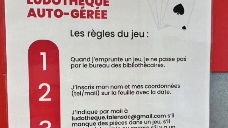 En 2022, la commune de Talensac a mis à disposition des habitants une ludothèque autogérée dans la médiathèque. Avec un petit budget, elle apporte un service en plus sans que le fonctionnement ne pèse sur les agents.