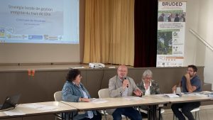 Présentation par Denise Prud’homm, maire de Penvénan, Pierre Simon, adjoint, Jean-Jacques Poudroux, directeur du patrimoine et des projets et Annie Bras-Denis, Maire de Plouaret et vice-présidente en charge de l’environnement à LTC.